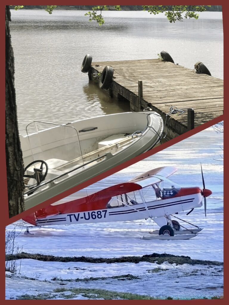 Silloin tällöin järven rannalle laskeutuu myös lentokoneita. Grillin kupeessa on ranta, johon on helppo nousta maihin myös pienkoneella saapuessa.