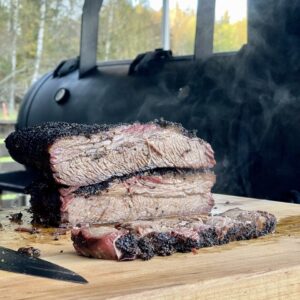 Pitkä kypsennys tekee lihasta mureaa ja mehukasta, ja tammisavu tuo siihen tasaisen, syvän maun ilman voimakasta savun terävyyttä. Brisket sopii hyvin esimerkiksi joulupöydän pääruoaksi perunoiden kanssa tai vaihtoehtoisesti hampurilaisen väliin. Texas-tyylinen kokonainen brisket tuo juhlapöytään näyttävyyttä ja taatusti mieleenpainuvan makuelämyksen.